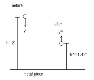 I also had to find the coefficient of restitution between the ball and club head material. I found this by dropping the ball on the material of a club head and finding the height of the ball before I dropped it and then the height it bounced, because the Velocity of the ball before and after was sqrt(2gh) using h before and then h* after as the determining values.