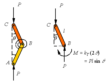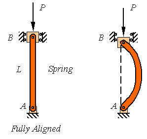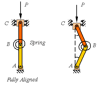 In reality, the two members can never be perfectly aligned so the system supports the load by the aid of the torsional spring and takes a shape such as shown in the right figure above.