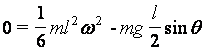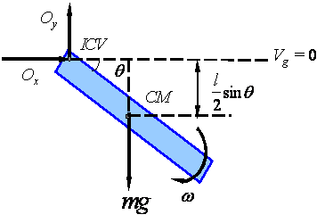 horizontal position. Calculate the angular velocity of the bar as a function